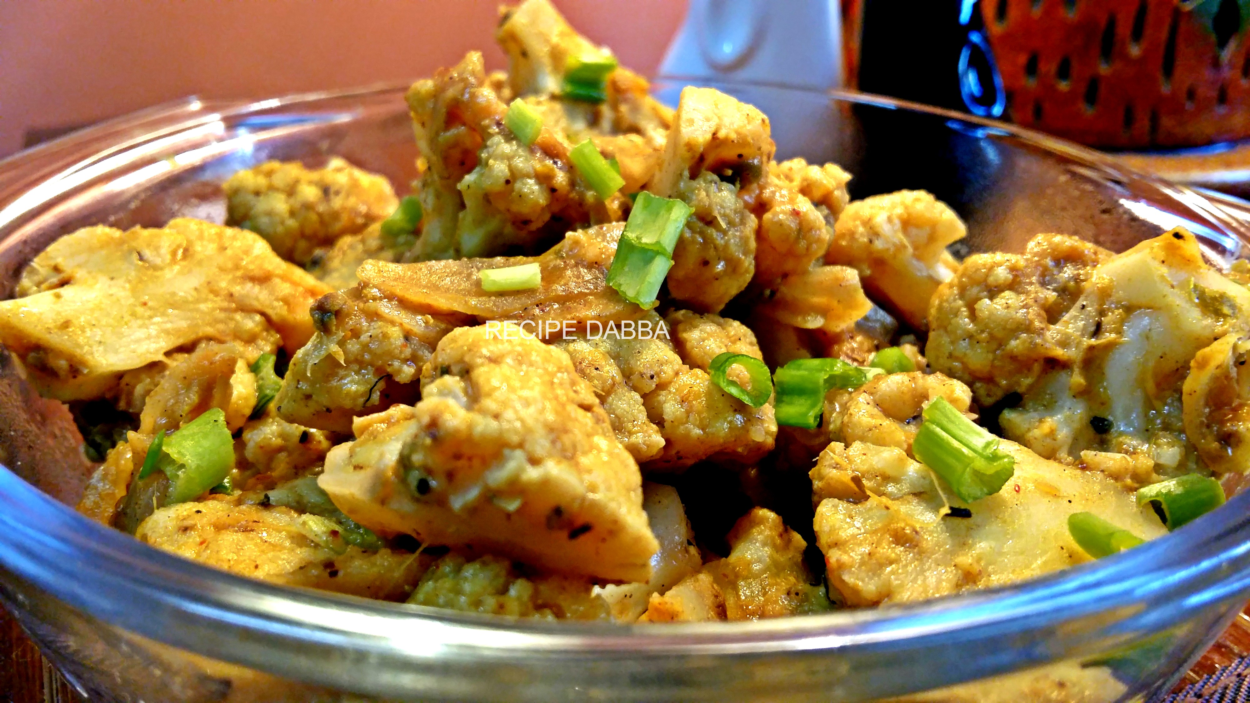 - Marinate cauliflower in a mixture of all the masalas apart from onions and oil