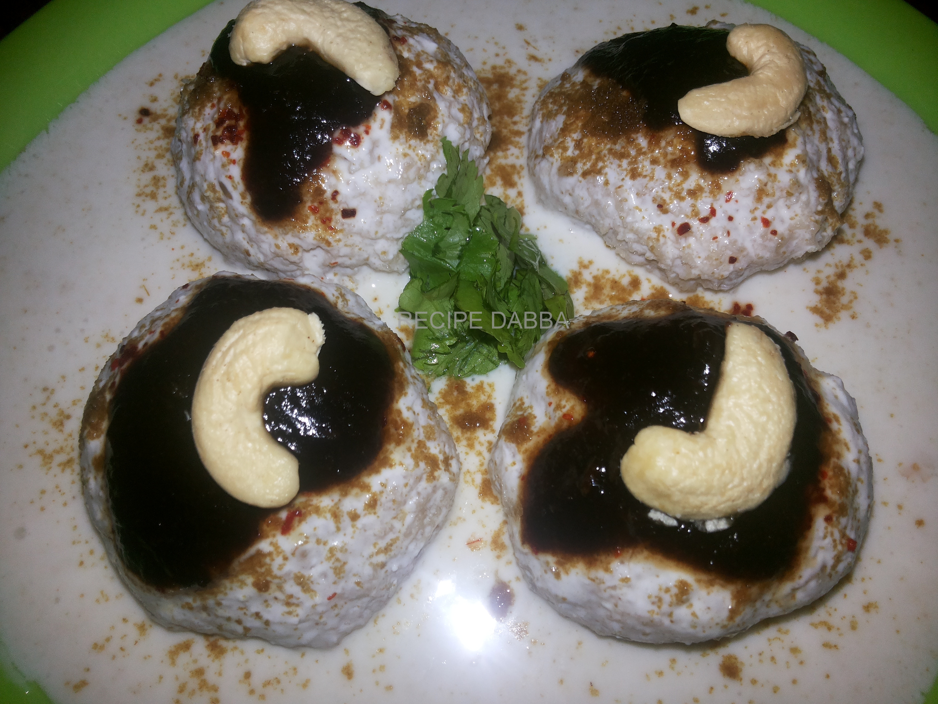 - Add the curd mixture in the rolls and garnish with tamarind chutney